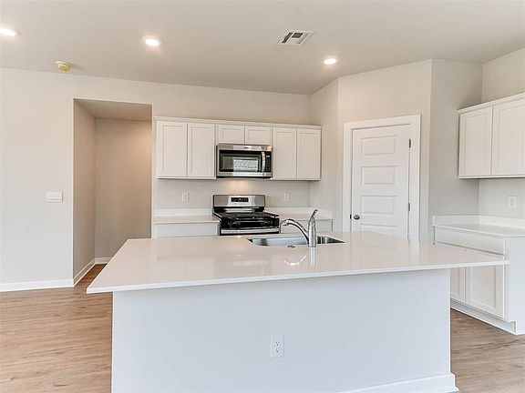 The Hanover is a charming one-story haven that offers 2 bedrooms, 2 baths, and a generous 1050 square feet of living space, perfect for those seeking a warm and inviting retreat. This one-story haven offers 2 bedrooms, 2 baths, and a generous 1The kitchen includes a breakfast bar with beautiful quartz counter tops, stainless steel appliances, and corner pantry. The first bedroom is situated outside of the kitchen area with an attractive ensuite featuring a separate water closet and spacious walk-in closet. Additional features include a tankless hot water system ensures you'll always have hot water when needed. “Home is Connected” smart home features which include a camera doorbell, Kwikset keypad lock, smart switch, and Alexa Dot for voice control. The exterior features include full sod yard with a landscape package in the front, and a covered patio! Located off Hefner & Kelly with easy access to HWY 77 and the turnpike you can enjoy all that OKC has to offer and will be just minutes from downtown OKC!