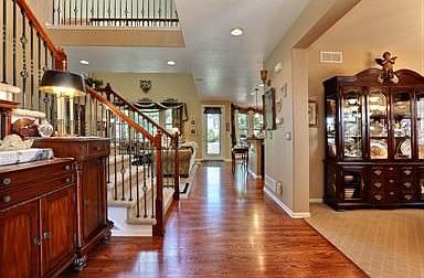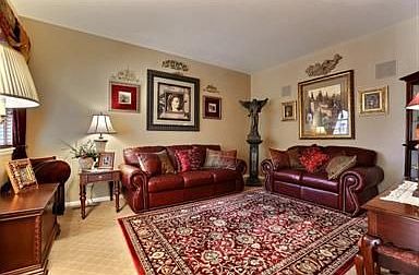 A 2-story sensation that is the definition of the coined real estate term 'turn-key' ... there is absolutely nothing left to do with this home, except move in! Meticulously maintained inside and out, this home will please even the most discriminating buyer. Exceptionally distinctive features include rich oak hardwood flooring, sculpted carpeting, decorative wrought iron and oak banister railings, crown molding, Scottish stained glass panels in the Family Room, power blinds in the Master Bathroom, low-voltage lighting, Rhino Shield ceramic exterior wall coating, retractable awning with wind sensor and epoxy flooring in both garages. The open floor plan offers formal and informal living areas and features a fully finished basement that offers a recreation room with full wet bar, a guest bedroom, full bathroom and a home theater room that includes theater seating, a theater screen and electronic theater seats. A fantastic location on a quiet circular street.
