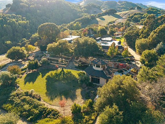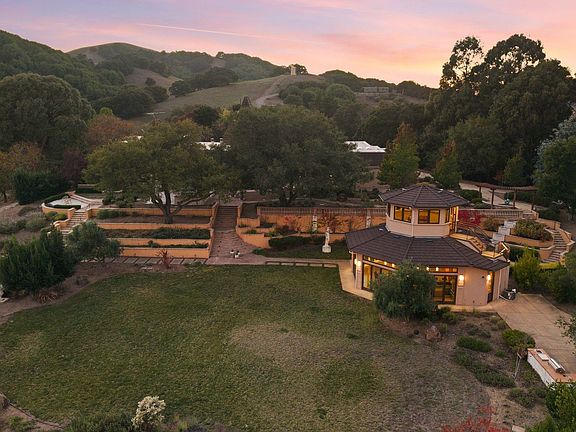 Experience the perfect blend of elegance, privacy, and modern living at this extraordinary 58-acre estate, just minutes from downtown Pleasanton and major freeways. Zoned for agriculture, the property captures panoramic views of the Dublin Hills and rolling southern vistas while offering a rare sense of space and tranquility. The main residence spans approximately 7,159 sq. ft. and features five bedrooms and four bathrooms. Inside, spacious rooms are designed for comfort and entertaining: a living room with a cozy fireplace and sunset views, a grand dining room for formal gatherings, and a family room filled with natural light. The kitchen and baths are generously sized and ready for a modern refresh to reflect your personal style. Outdoor living takes center stage with two barbecue areas, a bocce ball court, garden pathways, and private sitting areas accented by fountains. A circular entertaining home provides additional space for gatherings, while two large outbuildings offer flexible storage for vehicles, equipment, or hobbies. A mobile home set apart from the main residence offers its own private views, ideal for guests, a caretaker, or rental income. Owned solar. This property is perfect for equestrian use, small-scale farming, or simply enjoying peaceful country living.