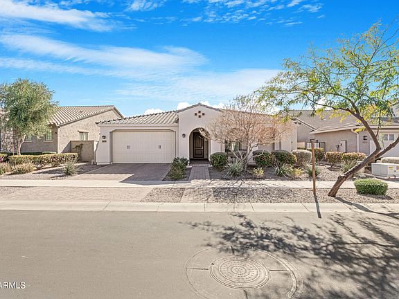 Welcome to this beautifully upgraded 3-bedroom, 2.5-bathroom home with a den, nestled in the highly sought-after Eastmark master-planned community. The interior boasts tasteful upgrades throughout, including a gourmet kitchen with crown modeling shaker cabinets, double ovens, and an oversized granite island perfect for entertaining. Bathrooms feature stunning tiled accent walls, and the luxurious spa-like master bath offers a grand walk-in rainfall shower. Exit through the large glass slider to enjoy ultimate privacy in your backyard oasis, complete with a built-in jacuzzi and grill—ideal for relaxation and outdoor gatherings. The extended, 30-amp 3-car tandem garage provides ample space for vehicles and storage. Don't miss the opportunity to make this gem your home!