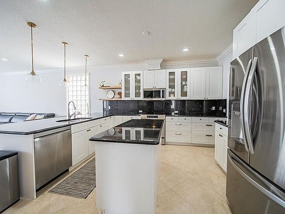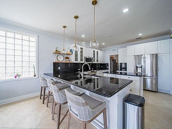 Courtesy of Exit Realty Premier Elite Beautiful lakeside home featuring 5 bedrooms, 3 bathrooms, and a 3-car garage, located in the gated community of Black Diamond. This Wellington property is zoned for all ''A'' rated schools and conveniently close to shopping, dining, entertainment, and Florida's Turnpike. As you enter, you'll be greeted by freshly painted neutral colors, elevated ceilings, recessed lighting, crown molding, and diagonal tile floors throughout the main living areas. The spacious updated kitchen boasts ample storage with white cabinetry, granite countertops, an island, a breakfast bar, and stainless steel appliances. It seamlessly opens to a large family room. The laundry room is located inside. Tenant is responsible for providing their own washer and dryer.