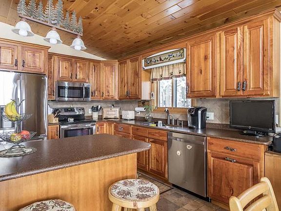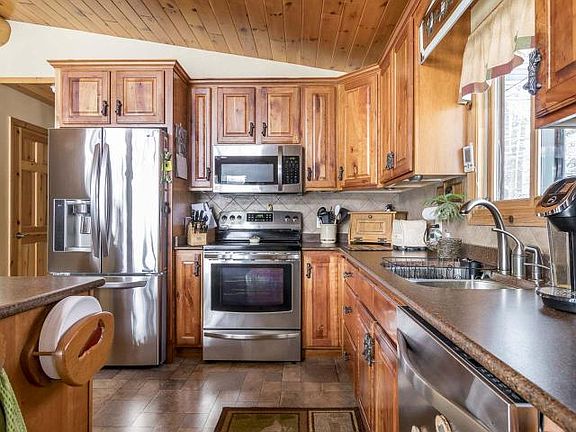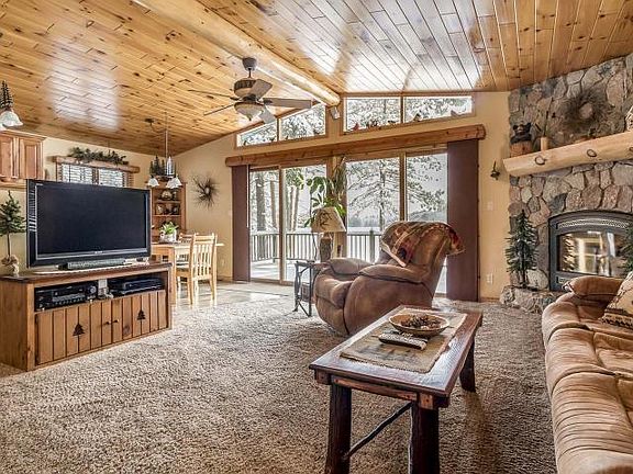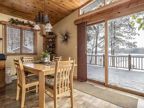 Check out this little piece of Heaven! Surrounded by pines near the end of a dead end road is you'll find this gem with 100' of sand frontage on a crystal clear lake with excellent fishing & endless recreational fun. Spectacular southern exposure allows for all day sun with big water views. You will love the attention to detail - inside and out. Renovated kitchen with custom cherry cabinets, Quartz counter tops, newer SS appliances & dining area. The living room features vaulted knotty pine ceilings & a corner gas FP with split face stone. Double patio doors to the 12x20 lakeside deck. The lower level provides plenty of space with a large family room with lake views and direct access to the outdoors. N'woods appeal with custom light fixtures, solid 6 panel pine doors & knotty pine trim. Landscaped yard and new pavers on the walkways. Roof/alum soffit & fascia & seamless gutters 2 yrs old. Whole house generator, 50 gal water htr, 200 amp electric and Frontier high speed internet.