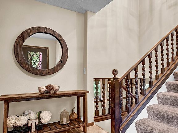 Large patio sitting areaLarge backyardGravel parking areaLarge deckDining roomSpacious kitchenPlenty of storage space