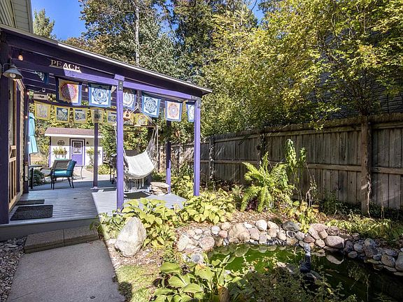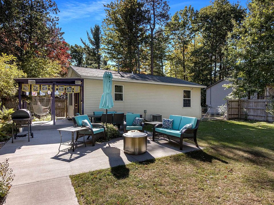 Tucked away on a peaceful haven, this inviting cottage is the perfect retreat from the fast pace of everyday life. As you enter, you're immediately welcomed into a calming and cozy space. The open-concept living area flows effortlessly with wood and tile flooring throughout, creating a seamless connection between the living room and kitchen. Abundant natural light streams through large windows, while an attached deck overlooks the fenced backyard and provides direct access to adjacent 261 acres of state land, ideal for exploring scenic trails. Two outbuildings, both wired for electricity, add versatility to the property. One features a sliding door, offering potential as a creative studio, personal retreat, or functional workshop. Outside, a water feature and raised garden beds enhance the property’s natural charm, making it perfect for relaxation and outdoor fun. What truly sets this property apart is its close proximity to Cedar Hedge Lake, a picturesque 195-acre lake known for excellent fishing, which you can access just a short walk away. Located minutes from Interlochen, you’ll enjoy proximity to local dining, the Interlochen Golf Course, and performances at Interlochen Arts Academy, while Traverse City is just a 15-minute drive away. This home is the ideal blend of natural beauty, functionality, and convenience! Don't miss the chance to make this peaceful haven your own.