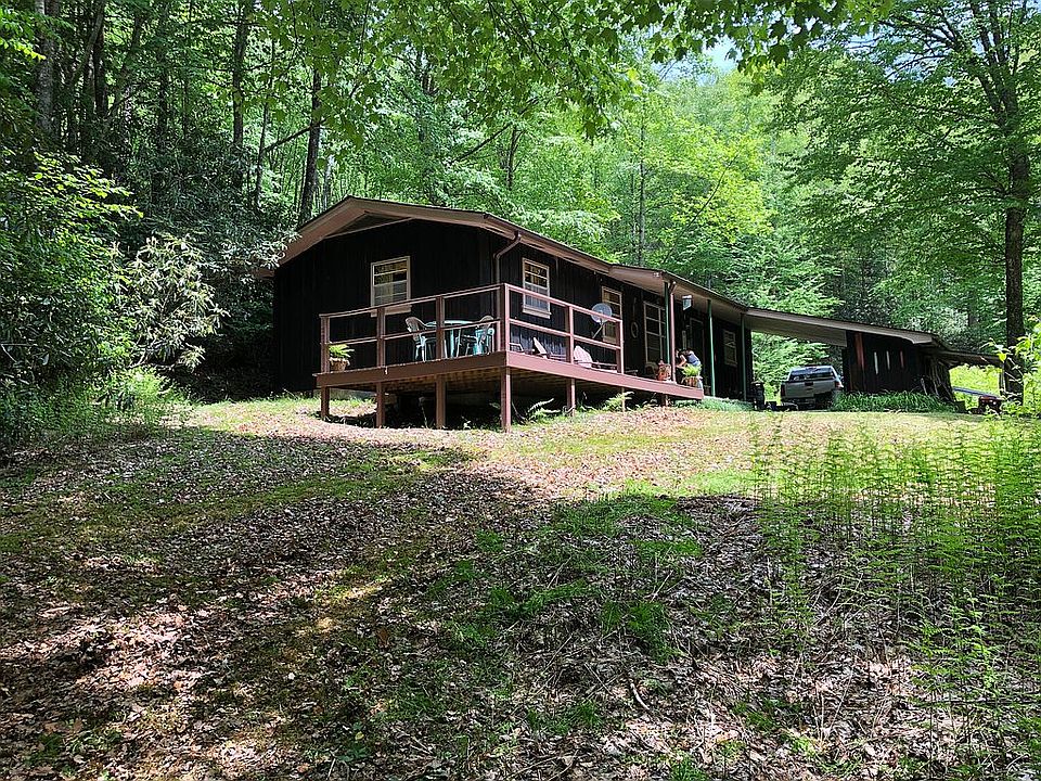 Retro off-grid cabin nestled deep in the Snowbird mountains of NC. This place truly is unlike anywhere else... the serenity, beauty, nature, scenery, etc. Everything in this home is reflective of the 60's and 70's. You will feel like you've stepped back in time. 2 spacious bedrooms on each end of the home. One half bath and one jack-and-jill full bathroom with a tub and shower. Open kitchen and living area with a brick, wood burning fireplace. This home runs off a Cummins home generator, updated a year ago. New spring water tank and pump system updated 6 months ago. All furnishings stay. Enjoy the creeks surrounding the home (out of flood plain), mountain views, trails, and 3 acres to roam. Large storage shed located on property that could be made into a bunk cabin. 45 minutes to an hour to the nearest town so come prepared. Showings after April 15th. Cash purchase only unless you can find a single family dwelling, off-grid lender. Must show proof of funds prior to showings (due to distance and drive time). Owner is a licensed GA Realtor.