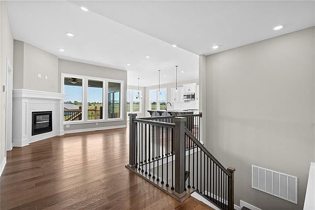 Come see this wonderful Reverse floorplan by award-winning Summit Homes! The Somerset floorplan featuresultimate convenience with so much on the main level including the large Primary Suite with walk-in shower, walk-incloset, and water closet. The Laundry Room with built-in shelving and table, the open concept Great Room, Kitchen andDining room as well as a secondary full bath and bedroom are also located on the main level. Lower level boasts a hugeRec Room, another full bath and 2 more bedrooms! The views from the private deck and patio are fantastic with the pond and some community greenspace behind! Enjoy the amenities including walking trails, fully stocked fishingpond, a swimming pool, and a playground!