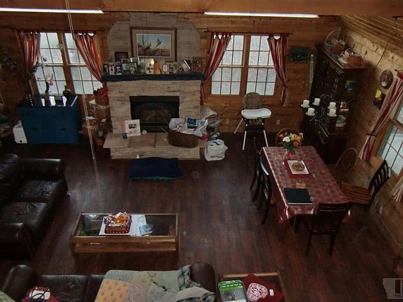 Landmark one-owner property! This is the gorgeous log home with the detached three car garage that you've admired every time you've driven out 100th Street, east of ORHC. You'll feel like you're in the mountains with its natural wood interior, the two story great room with stacked stone fireplace, and the master loft. There is also a bedroom and full bath on the main level, plus a third bedroom in the walk-out lower level. Basement family room with half bath. Open porch; wooded five acre lot.