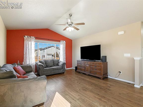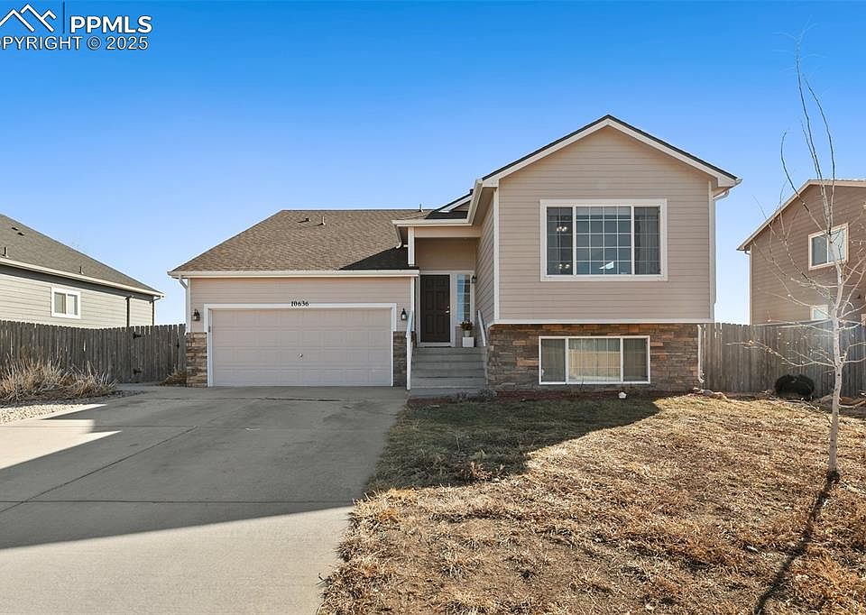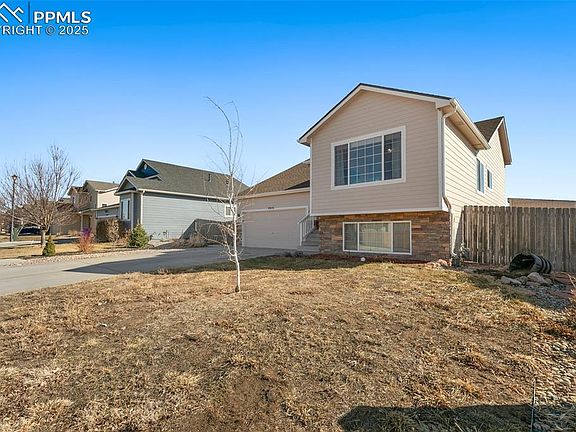 Beautiful house in great location! This three bedroom house has everything you could want with room to expand. The main floor features an open concept living and dining space. The large windows bring in ample natural light and provide an airy feel to the space. The kitchen features updated appliances, a pantry, and tons of counter space to accomodate all of your cooking needs. Upstairs, you'll find the master bedroom with large windows and an en-suite bathroom. The bathroom has an oversized tub and leads to a walk in closet with plenty of storage space. The two other bedrooms upstairs have fresh paint and easy access to a full bathroom. Downstairs, you'll find a large secondary living room, a utility room, a half bath, and access to the backyard. The fenced yard has a seating area and an included shed to provide plenty of extra storage. An unfinished basement provides a large space to expand or add a fourth bedroom. A brand new level 4 roof was installed in October 2024. The Lorson Ranch location is close to military bases, shopping, and lifestyle amenities. You'll love this beautiful home!