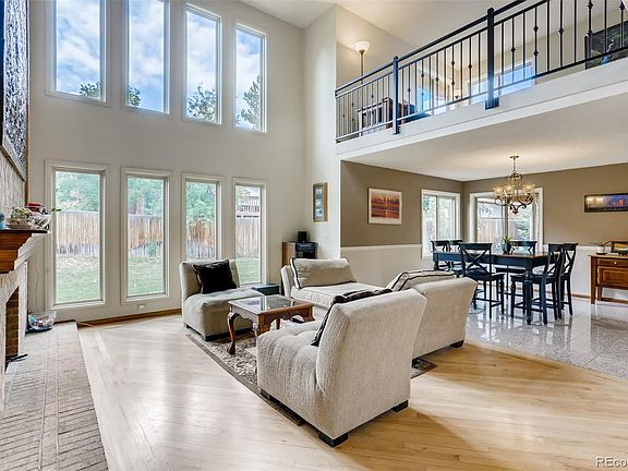 Prime cul-de-sac location within the interior of neighborhood! From the moment you enter this home you will appreciate the light & openness. The formal two story living room is accented with floor to ceiling windows which creates a bright sunny space along with a fantastic fireplace. The living room is open to the formal dining room, perfect for those special occasions. Updated kitchen with rich quality cabinets along with pull out drawers, soft close & granite counters, plus a breakfast area with charming window seat. The kitchen is open to the family room where everyone is sure to gather. Enjoy cozy winter nights with three fireplaces. Large main floor master with en-suite updated five piece bath with walk-jn travertine shower & double shower heads, walk-in closet and gas fireplace. French doors open to additional 250 sq ft finished and heated sunroom, which is perfect space for exercise room, study, library or master retreat. The staircase with updated iron railings take you to 3 additional bedrooms, full bath and a comfortable loft. The basement has a nicely finished recreation room, 5th bedroom and full bath. Large lot with covered deck, water feature and sports court. Zoned for Cherry Creek High School! Don't miss the opportunity to view this home!