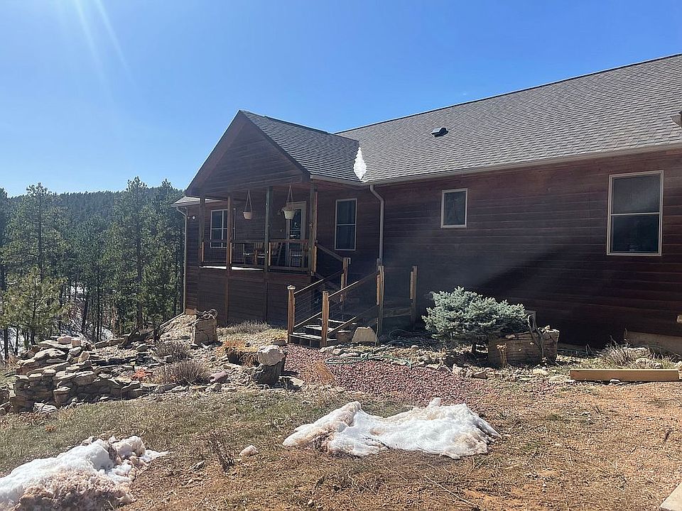 This elegant single family home sits on a tree-lined road. Surrounded by the beauty of the black hills, a highly desirable property. A private entrance, beautiful porch, rock walkway and thoughtfully landscaped grounds invite you into the front yard. Upon entrance, you are warmly greeted by hickory flooring, fresh paint, and a bright and open floor plan seamlessly connecting the living room to the kitchen and leading to the inviting back porch, as you are in aw of the view of the Ponderosa Pine and centered view of Crow Peak. Meticulous attention to detail is presented in the kitchen with new granite countertops, tile backsplash, hickory finished cabinets, and brand-name appliances. Adjacent to the living room, there’s a comfortable dining room, an oversized master bedroom with beautiful pine trimmed windows including the a walk-in closet, master bathroom and lovely bathtub and separate shower. Downstairs you’ll find another beautifully modernized bathroom, bedroom, and a bonus room/fifth bedroom that provide additional flexibility. The backyard is full of trees, and a large covered patio this backyard provides plentiful space for gardening and entertaining. The backyard includes a chicken coop & green house. I invite you to contact us for more facts and features of this beautiful property.
