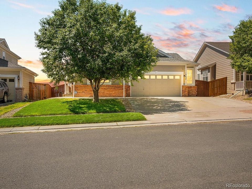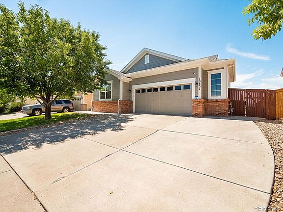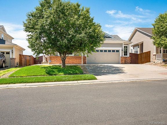Welcome to Buffalo Mesa! This lovely ranch style home is move in ready and waiting for you! The main floor features an open floor plan with high ceilings, a family room with a cozy fireplace and built in features, an open kitchen with island and all appliances included, an eating area with access to the brand new deck, a primary bedroom with private, STUNNINGLY REMODELED BATHROOM that includes a huge custom walk in shower, dual vanities and a large walk in closet. The main floor also offers 2 secondary bedrooms and an additional full bathroom. The large walk out basement is ready for your finish and offers plenty of additional storage. Enjoy the Colorado sunsets with your mountain views from the brand new trex deck and the brand new professional landscaping in your private backyard. New water heater, new exterior paint, new whole house humidifier, new concrete and more! An oversized 2 car garage completes this home. Great location with parks, trails, rec center, schools and more! Easy access to DIA, shopping and amenities.