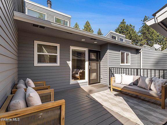 Lakefront Luxury Redefined: Unparalleled Townhome Living with Custom Touches. A Rare Find on Avondale Lake - Experience incredible lakefront living at this completely remodeled Ntakan Condo. With exclusive lake access and a private dock. The property boasts a fenced, inground community heated pool reserved for the 12 unique units, situated in a highly desirable lakeshore neighborhood. The interior underwent a comprehensive top-to-bottom remodel in 2023 opening up the floorplan, featuring custom-designed cabinets that complement the elegant aesthetic. Hand-painted murals by Christina Hall, a talented local artist adorn key areas, adding a unique artistic flair in private atrium. Home is light, bright and inviting with new windows, doors and newly installed solar tubes. The updated layout includes a new high end Dimplex electric fireplace, beautifully renovated bathrooms, stunning kitchen with top of the line appliances, RO water filtration system, new LVP flooring throughout, modern fixtures, and stunning quartz countertops. A new gas furnace, and A/C ensure comfort and efficiency with an upgraded 220 amp circuit. Primary bedroom has beautiful ensuite bath with large walk-in closet and deck to lovely lake views. Office has a custom built murphy bed, nightstands and desk. All closets upgraded with custom shelves. Nestled between Avondale Lake and Hayden Lake, the condos are situated in a private, treed setting teeming with abundant wildlife. This tranquil location offers proximity to Hayden Country Club. Convenience is paramount, with shopping, schools, and all essential services just minutes away.