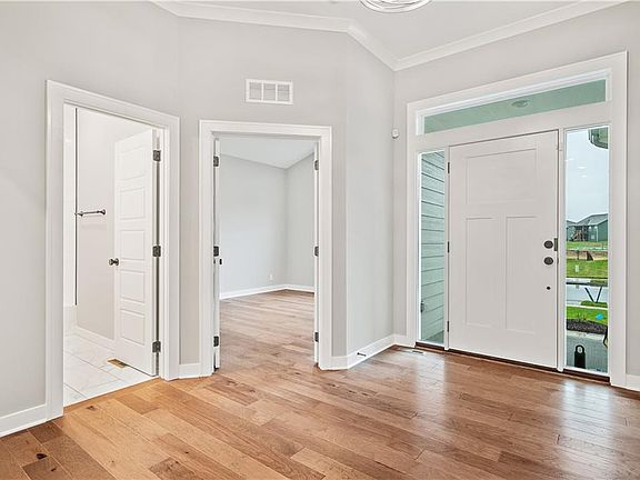This beautiful Somerset reverse home by award winning Summit Homes offers so much! It features ultimate convenience with so much on the main level including the large Primary Suite with walk-in shower, walk-in closet, and water closet. The Laundry Room with built-in shelving and table, the open concept Great Room, Kitchen and Dining room