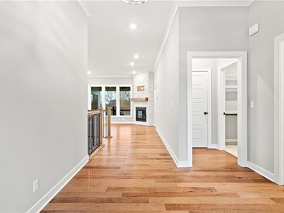 as well as a secondary full bath and bedroom are also located on the main level. With Sherwin Williams Knitting Needles (SW 7672) on the walls and  white stone on the fireplace and pure white kitchen cabinets with a light stained kitchen island, this home creates a customizable space for any style preference. Lower level boasts a huge Rec Room,