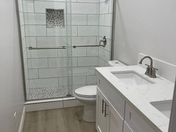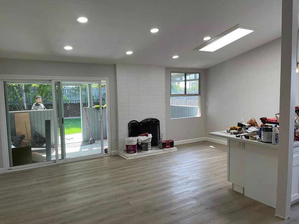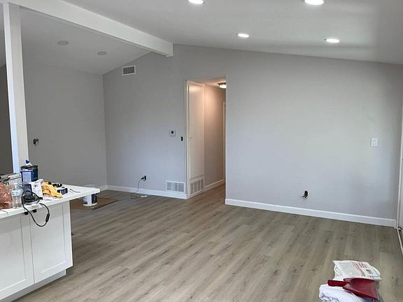 Completely remodeled interior. New kitchen along with new bathrooms, floors, lighting, paint, trim, and windows. There are two living rooms (or one could be used for dining) Two of the four bedrooms have their own bathrooms. Master bedroom has door to large backyard. Brand new AC, new washer and dryer, and new landscaped backyard with new turf and low maintenance landscaping. Small two car garage and lots of street parking. Neighborhood is quiet and has quick access to Highways. Walking distance to local elementary school. Pictures show house in the middle of the remodel. It will be complete by end of May and available to move in May 15th (possibly sooner). I will update pictures when the remodel is complete. Open to 6 month or 12 month lease. No smoking. 1 pet policy service dogs are acceptable giving paperwork is required for proof of service. Owner pays for water