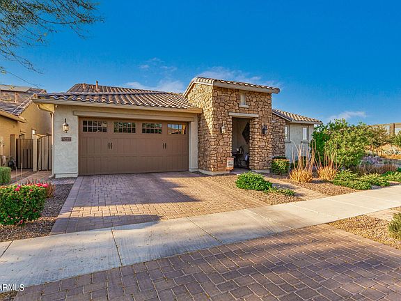 Welcome Home to this premium corner lot with a spacious and split floor-plan. Featuring 3BR, 2.5 bath, office, extended Laundry Room with full cabinets/sink with entry into the master oversized closet. Entertaining made easy with the open kitchen area, surround sound, extended island with built in storage cabinets underneath, gas drop in stove, double wall ovens and large walk in pantry. Complete privacy made with beautiful white plantation shutters throughout. The backyard has a extended covered patio with speakers, built in BBQ, Fire Pit and Hot Tub which is perfect for relaxing and entertaining friends! Welcome to your Home Sweet Home and enjoy all the amazing events Eastmark has to offer for its residents.