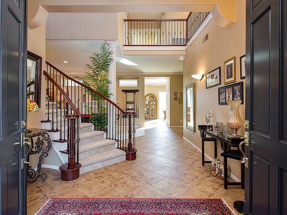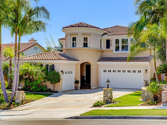 Gorgeous sweeping views of canyons & sunsets. Immaculate throughout, this home boasts open greatroom/kitchen, den, and office, all with views. 5 Large bedrooms with 4 full baths including one bedroom and full bath on first level. Master suite w/fireplace, balcony, huge master bath, all have stunning panoramic views. Private cul-de-sac street with no neighbors across the street or behind. Tropical front and back yards with lush landscaping and uplighting. Entertainers dream yard with waterfall pool/spa, built in BBQ, and plenty of seating areas. Wonderful neighborhood. Close to great schools, dinning and shopping. Short drive to the beach. THIS HOME HAS IT ALL!!(more pictures coming 8/29)