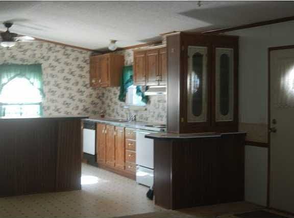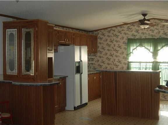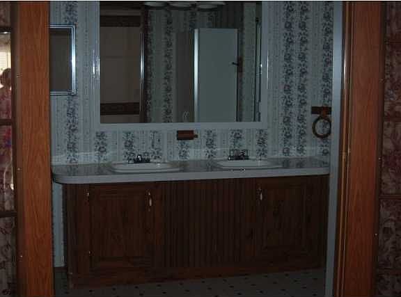 96' Super clean!! 16x80 2 Bdrm 2 Ba. Cathedral ceiling, super large kitchen w/ island bar, lots of cabinets & counter space. Bdrms are really spacious & master bath as well w/ jacuzzi tub & shower, double sinks, double french doors, front carport cemented 24x24, back patio cemented 16x20, trailer blocked on cement slab - storage bldg remains 12x20 - A/C wired & water. New skirting, extra pole wired 30 amp for RV Hookup