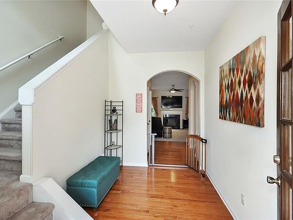 Minutes from Marietta Square! Gated townhome community! END UNIT! An amazing value! Master Bedroom has sitting room and huge walk-in closet. 2nd Bedroom has walk-in closet. Master has trey ceiling and others have vaulted ceilings. Newer carpet! Tiled baths! Arched opening & columns! Wooded view! Upgraded energy efficient 2016 hot water heater! Home surge protector! Separate upstairs laundry room! Terrace level all ready for fireplace and finishing. Beautiful entry & pool! 4 dog walks.