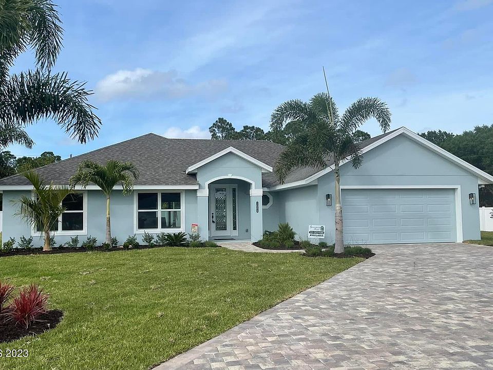 READY NOW! LOT 15 - Sanibel Cove... Welcome to Palm Bay's newest exclusive community featuring 50 total homesites. Construction is completed on this beautiful 4 bedroom home on an oversized lot, 2 bath, 2 car garage home with a covered lanai. This home offers a large family room/open plan design with dining area, spacious kitchen with many beautiful upgrades. The master suite features a tray ceiling, 2 large walk in closets, master bath retreat with large tile walk in shower, soaking tub & dual sinks with granite countertops. Nice Laundry room with extras! Attention to detail in every aspect of this home from flooring, to lighting, cabinets & more. Community offers city water/sewer lots, nice lake-views when entering into this quiet neighborhood & brick paver driveway