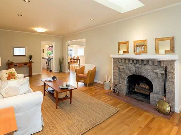 Light & airy updated Craftsman Contemporary. Living room with skylight, recessed lighting and charming fireplace. Family room/dining area opens to the deck. Open, spacious remodeled kitchen with honed granite countertops, skylight and breakfast bar. Three bedrooms, two full bathrooms (public record shows 1 bath, second bath done w/o permits). Private, level, fully fenced yard with sweet lamp posts. Detached two-car garage could be used as home office, artist studio, exercise/yoga space, etc. A great bonus space! Great location in Albany near shopping, BART, schools! Open Sunday July 6th, 2-4PM.