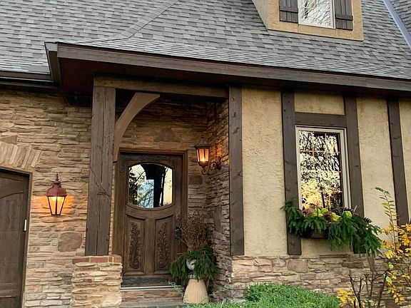 Come home to your meandering driveway and 8 acres on a bluff overlooking the Finley River. This fantastic Ron Hill French country walkout basement home, situate on a bluff overlooking the Finley River and the old Riverside Inn location, was built by, and meticulously cared for by this seller. Rustic old doors and wood beams, soaring high ceilings, many large bright windows, open floor plan with a true 'cooks kitchen' with commercial gas oven, walk-in pantry and a huge island. This home is great for entertaining, with large decks and patios, Great room, Hearth room, Rec. room, and Family room. Main floor Master suite, plus 5 more bedrooms (each with a bath). Heated and cooled John Deere room, Storm shelter, downstairs kitchen, 2-fireplaces, plus tons of great storage.