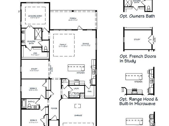 The Sand Dune plan with Coastal style elevation is a charming one-story home with 3 bedrooms, 2 full bathrooms, a study, and 2-car attached garage. The spacious open-concept kitchen, dining, and family room plus large covered lanai offer plenty of room for gathering and entertaining or just spending an evening at home. Quality finishes included in the main living spaces include LVP flooring, granite countertops, large pantry, Frigidaire Gallery stainless steel appliances, low profile LED lighting, and brushed nickel faucets and hardware. The primary suite is located at the back of the house with plenty of windows letting in natural light, a large ensuite bathroom with double vanity, walk-in shower, and a walk-in closet. The bathrooms in this home feature large format tile flooring, granite counters, and coastal style cabinetry. All newly designed homes in the Breakfast Point East community are built with innovative steel framing, rated to withstand up to 160MPH winds!
