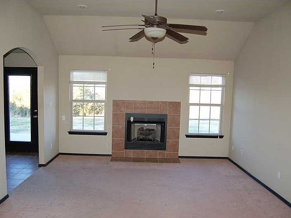 Cute 1280 sq ft home features 3 bedrooms, 2 baths, 2 car garage, eat-in kitchen, gas log fireplace, spacious living area, patio, trey ceiling, blinds, carpet/tile flooring, gas stove, ceiling fans, and much more!