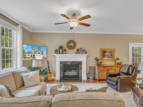 Welcome to this beautifully designed, custom-built four-bedroom home situated on a peaceful cul-de-sac. As you enter, you'll be greeted by a light-filled, spacious open floor plan featuring site-finished hardwood floors and elegant crown molding throughout. The first-floor master suite is a tranquil retreat, offering serene views of the surrounding woods and a tray ceiling. The luxurious master bath includes dual vanities with granite countertops, a tiled shower with frameless glass, and plenty of storage. The kitchen is a chef's dream, equipped with custom cabinetry, soft-close drawers, granite countertops, a tiled backsplash, a slide-in range, and under-cabinet lighting. Other highlights of this home include generously sized secondary bedrooms, a versatile bonus room, a cozy bonus nook, and ample storage throughout. Step outside to relax or entertain on the private screened porch and deck, both of which overlook the tranquil woods. Additional storage is available in the large walk-in crawl space. Situated on a premium lot with a natural, retreat-like setting, this home offers both privacy and a connection to nature. The neighborhood also includes a pool for your enjoyment. Welcome to your new home!