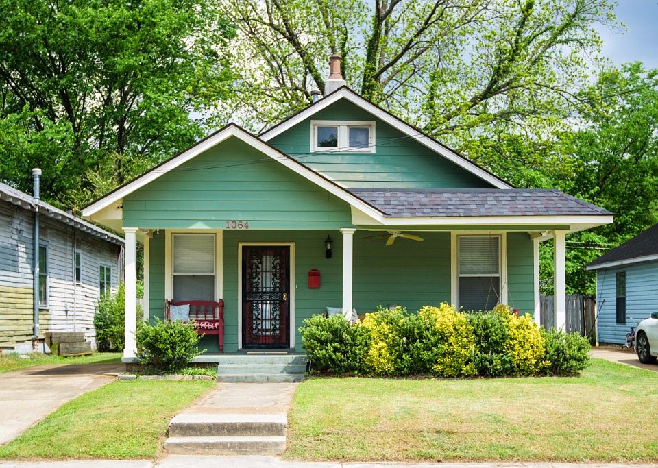 Cute, cute, cute! New roof! Enter under your covered front porch to the living room. Gorgeous wood floors throughout. Perfect starter, rental or roommate one-level 2 bdrm/2 bath. Smooth 9' ceilings. Updated kitchen w/gas stove, newer appliances, double ceramic sink & plenty of cabinets. Separate laundry room adjacent to kitchen. Updated tiled baths- Master w/walk-in shower & guest one w/Jacuzzi tub. Good-sized level wood-fenced backyard. Driveway to left of home. Come live where you play!