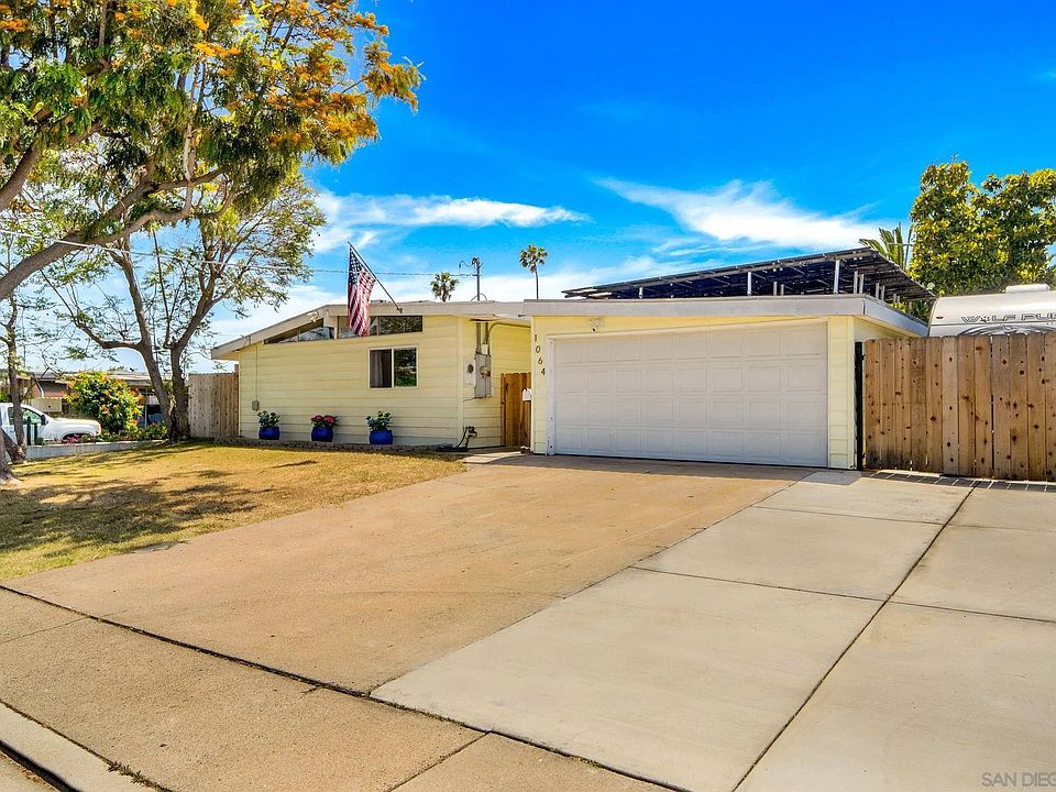 Welcome to this mid-century modern home in the heart of Chula Vista. As you step inside, you are greeted by an open and airy floor plan boasting plenty of natural light. The home features paid solar panels, ensuring energy efficiency and cost savings. The new HVAC system adds to the comfort and convenience of this home. For the outdoor enthusiast, this property offers RV parking, and a new covered patio, with its beautiful pavers, provides a serene space to relax and entertain. Enjoy the cool breeze and warm ambiance with the addition of new lights, fan, and an outdoor fireplace. The new retaining wall adds both beauty and stability to the backyard. Inside, you will find a newly updated kitchen with new countertops, sink and dishwasher. And to top it off, the home boasts dual pane windows, providing more energy efficiency. Don't miss this opportunity to own a piece of mid-century modern architecture, with all the modern amenities, in the desirable Chula Vista neighborhood.