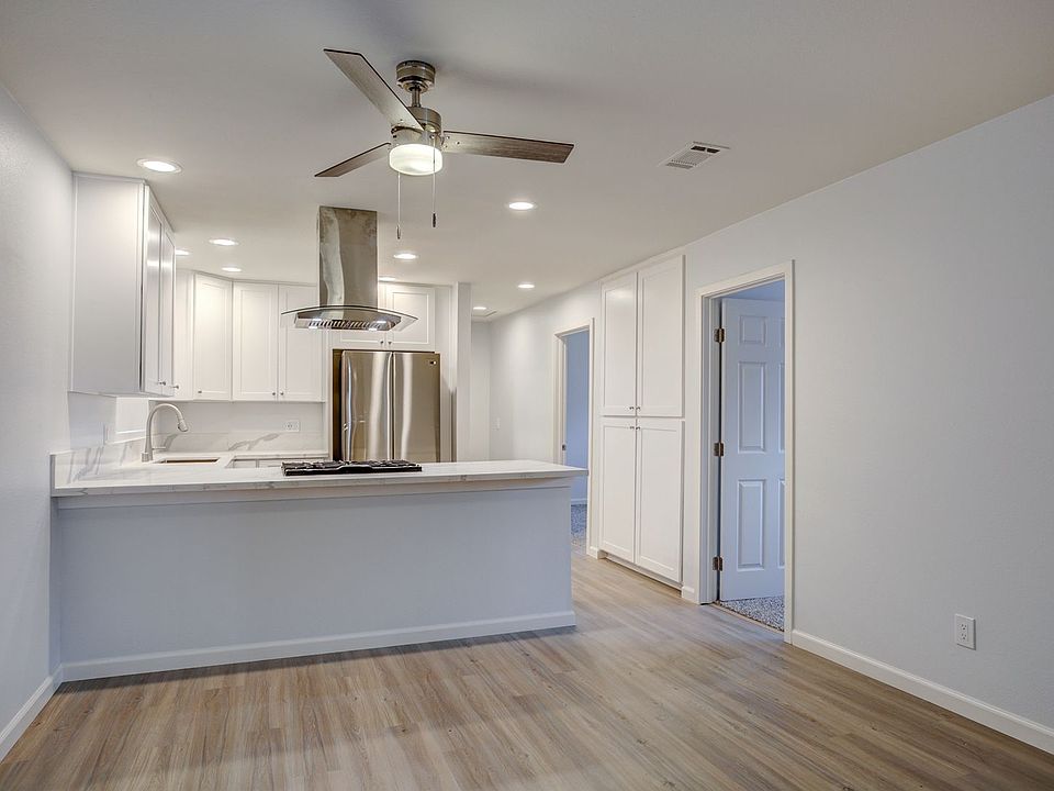 Spacious patioBeautiful quartz countertopsTop-of-the-line stainless steel appliancesHigh-end appliancesElegant white shaker cabinetsIn-unit washer and dryerGas range