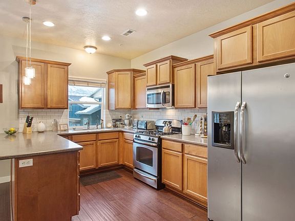 This ideally located town-home comes with beautiful mountain views, newly painted interior and exterior, new deck, new backsplash in kitchen, dark wood floors, washer and dryer, stainless steel appliances, Ring video doorbell, TV wall mounts, and a large two-car garage. With two pools, two hot tubs, a gym, multiple playgrounds and open spaces for families, it's a perfect place to call home. Perfectly situated with quick freeway access, Front Runner, and Station Park less than a mile away.