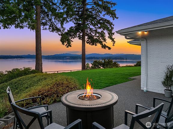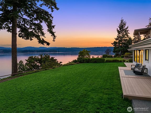 Breathtaking sunrises and stunning sunsets bookend each day at this one-story waterfront home with 130' of medium-bank frontage and private tidelands on 1.74 acres. Offering 2,143 sqft, 3 beds, 2 baths plus an office, its bright, south-facing layout frames sweeping 180° views from nearly every room. High-end details include quartz counters, engineered oak floors, and professional-grade appliances. Outdoors, enjoy the sports court, lawns, and private beach. A 3-car garage plus shop area adds versatility. In CK School District and just minutes to shopping and the hospital, this refined waterfront retreat blends distinctive architecture, elegant finishes, and effortless single-level living along Puget Sound’s truly rare stretch of shoreline.