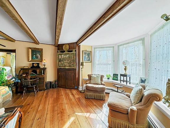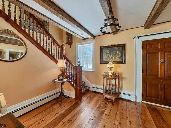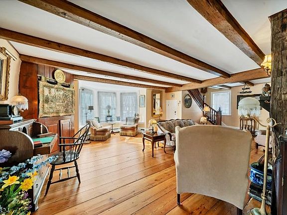 Historic stone home with a gambrel roof, the c. 1750 Henry Landis House is where the Marquis de Lafayette stayed while recovering from an illness in 1778 at age 21. Lafayette was a French officer who came to America to fight on the side of the colonists in the Revolutionary War (East Amwell Historic Pres. Comm.). Also, this landmark home is said to have been Washington's headquarters after the Battle of Monmouth. The property includes 2.5+ Acres with an in-ground pool and pool house, on gracious grounds with lovely gardens--originally over 300 acres during Henry Landis' ownership. Truly built as a home of a gentry landowner/farmer, the very spacious rooms include: Living Room with stone fireplace, Formal Dining Room, Kitchen, and Bedrooms (one en Suite). The upstairs Den can be used as 4th Bedroom. Gorgeous exposed beams worked by fine craftsmen, early wide pumpkin pine floors, stone fireplace, original millwork, early doors and some original hardware. The walk-up attic is not to be missed--would be wonderful for an art/yoga studio or office if finished. The large, dry stone basement is also quite interesting in that British prisoners of war were apparently temporarily housed here. This incredible early home is listed on the National Register of Historic Places as part of the Ringoes Historic District.