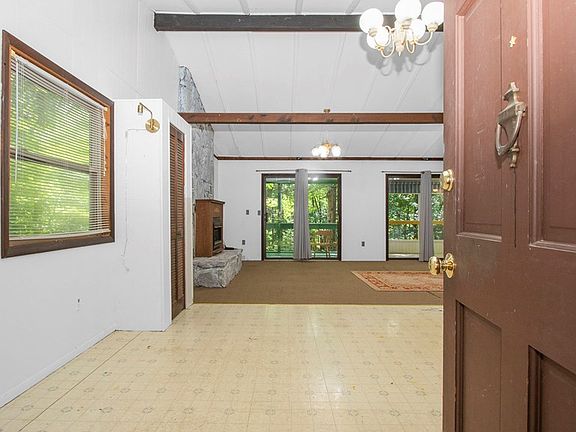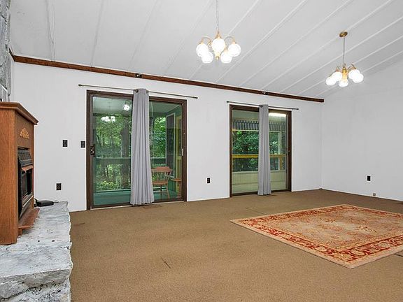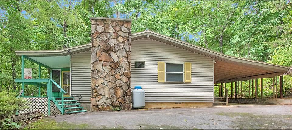 Nestled in the tranquil Tanglewood Forest subdivision mere minutes from downtown Murphy NC, this 2-bedroom, 2-bathroom single-level home eagerly awaits your personal touch and TLC. Embrace the serenity, with two additional lots that total almost 4 acres to ensure privacy. As you arrive, a paved driveway and ample parking greet you, complemented by a large attached carport that accommodates two vehicles. Step inside to discover your kitchen, seamlessly flowing into the Great Room. Here, vaulted ceilings and a cozy gas log fireplace create a warm and inviting atmosphere. The Great Room has two sets of sliding doors that lead to a spacious screened porch, offering the perfect spot to enjoy the tranquil surroundings. Inside, you'll find two comfortable bedrooms and two well-appointed bathrooms, along with a convenient laundry area. The layout is designed for ease and comfort, with a focus on open living spaces that bring the beauty of the outdoors in. Outside, immerse yourself in the peaceful woodland setting. The expansive property offers endless opportunities for exploration and relaxation. With paved roads and a quiet, woodsy atmosphere, this home provides the perfect backdrop for a tranquil lifestyle. Here, you'll forget you even have neighbors as you bask in the natural beauty and privacy that this unique home offers. Whether you envision a serene retreat or a cozy family home, this property is a blank canvas ready for your vision.