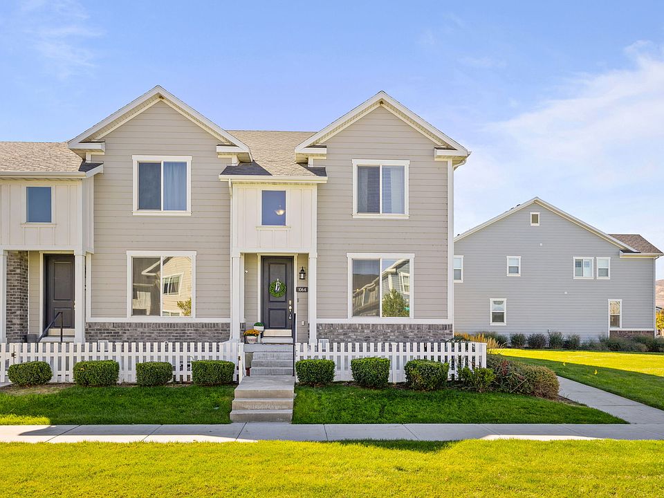 Discover the charm of 1064 W Narrows Lane in Bluffdale! This stunning 3-bedroom, 2.5-bath end-unit home boasts 2,168 square feet of thoughtfully designed living space, featuring breathtaking unobstructed views to the west and a spacious adjacent grass area-perfect for relaxation or letting your dog roam. The main floor welcomes you with a bright, open-concept kitchen, dining, and living area, seamlessly blending style and functionality for effortless entertaining or cozy everyday moments. Upstairs, three generously sized bedrooms await, including a luxurious primary suite with a private bath and expansive walk-in closet. The unfinished basement offers endless possibilities to customize-whether you envision a family room, home office, gym, or additional bedrooms. Nestled in a sought-after Bluffdale neighborhood, this home provides convenient access to parks, top-rated schools, shopping, and major roadways for an easy commute. Embrace the perfect blend of modern comfort, future potential, and prime location in this exceptional Bluffdale gem!.
