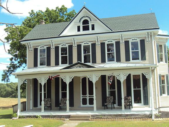 Victorian-Era farmhouse with a totally restored exterior. This home has a welcoming front porch and side porch with an entrance to the parlor. It features bow windows, original hardwood floors, 'out-kitchen' with walk in fireplace. So much history in this great home!