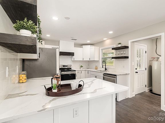 Priced BELOW appraisal - your chance for immediate equity. Exquisitely remodeled charming 3 BR, 2 BA brick ranch home in Rock Hill, SC - just minutes to I-77, and downtown Rock Hill. This home's features are perfect for everyday living with luxurious delight - What a joy it will be to entertain in this open, spacious living area and kitchen with a beautiful island topped by QUARTZ counter tops that will impress even the pickiest of friends. The custom range will make cooking a pleasure! The home's walk-in shower will feel like a spa visit or a stay at a luxury hotel. Add a cozy chair, and enjoy a meditation on the back porch with the sounds of nature to bring you peace. NEW windows, roof, lighting, and flooring in addition to many other new features. Beautiful home with a short drive (less than 30 miles) to Charlotte! Agent-owned.