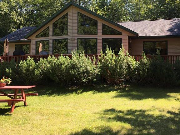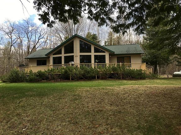 A beautiful setting for this one level 3 bed 2 bath home. Open floor plan. Home features pine vaulted ceilings, alder cabinets & pull out shelves in the kitchen pantry. Large deck to enjoy the lake, detached 3 stall garage, 2 storage sheds, steel siding & 150' of lake shore!