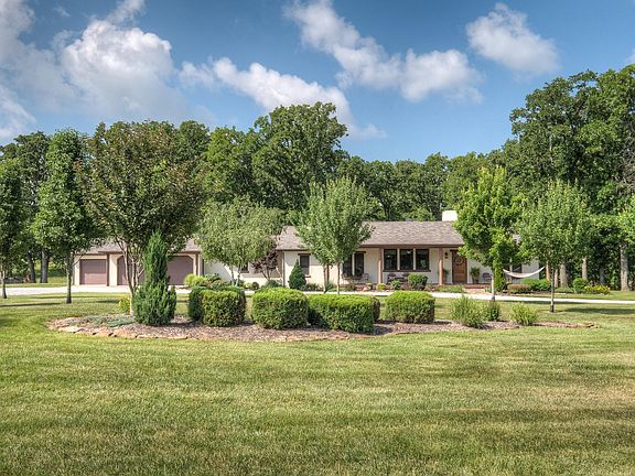 This custom home features a large open floor plan with many upgraded features. Home boasts large kitchen with 2 full sized ovens, custom cabinets, beautiful kitchen island with chiseled edge granite top. Recessed lighting, ceiling fans, wood beams, wide plank wood floors, 11 foot ceilings and faux finished walls create a custom design in the main living area. Built-in entertainment area, wood burning fireplace and generous foyer make this design one-of-a-kind. A window-lined wall with transoms above and a glass pane set of French doors lead to the sunroom with vaulted ceiling. Heated ceramic tile floors in the sunroom allow for extended use in the winter time while view to the pool and mature trees completes your Zen. Another set of French doors leads to your outdoor oasis