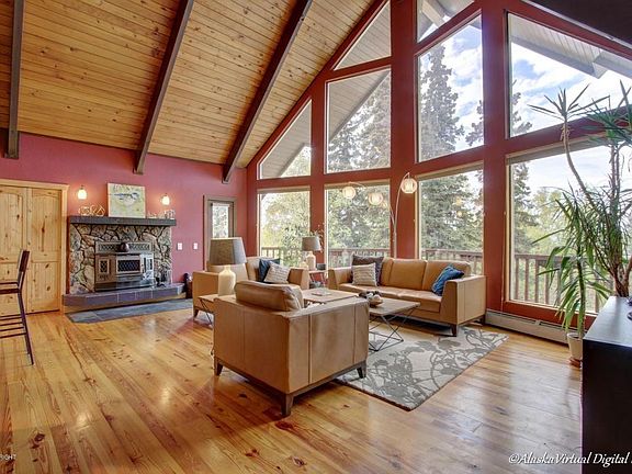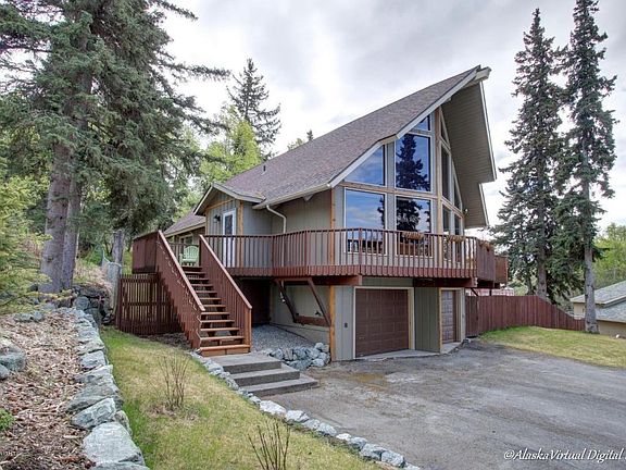 When I think of an Alaskan home this is the home I envision! Open floor plan, office/family-room, wraparound deck, lots of sun & windows, radiant heat in baths & kitchen, tile, hardwood floors, just under 1/2 acre, yard fenced, mountain/inlet views, RV parking & greenhouse are just a few features in this wonderfully remodeled home. Pre-inspection completed, Easy to show!