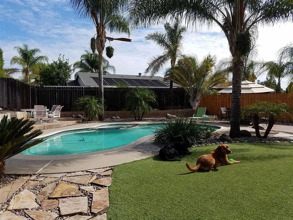 Private courtyard. 2 living areas. Pool. No breed restrictions. Large storage shed. Quiet street. 6 month or year lease.