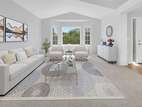 You've hit the jackpot with this rare and highly sought-after Parker ranch-style home, a meticulously maintained gem in the Clarke Farms neighborhood! Step inside the 2,064-sq ft layout to discover the timeless beauty of gleaming wood flooring that accentuates sophisticated neutral tones throughout. Vaulted ceilings soar over the sunlit gathering areas, including the family room where a gas fireplace and surround sound elevate your entertaining experience. Bay windows in both the chandelier-lit dining room and cheerful breakfast nook frame delightful outdoor views as you share meals. Sure to please the avid cook, the kitchen is equipped with new appliances, abundant white cabinetry, dark granite countertops, and a subway tile backsplash.