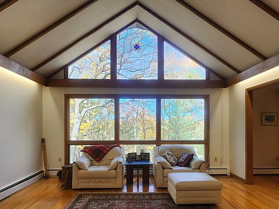 Contemporary ranch home with 3.20 acres of privacy. Gorgeous views, an abundance of natural light, and a spacious rear deck. 1st-floor master bedroom suite. The master bath has a tub, shower, and walk-in closet. Beautiful fireplace on both the main and lower levels. Cathedral ceilings in the living room. Spacious kitchen. Hardwood floors throughout. The lower level has 3 bedrooms or use 1 as an office. Plenty of storage space. Great location- Convenient to downtown Corning, I-86, the malls and Finger Lakes.