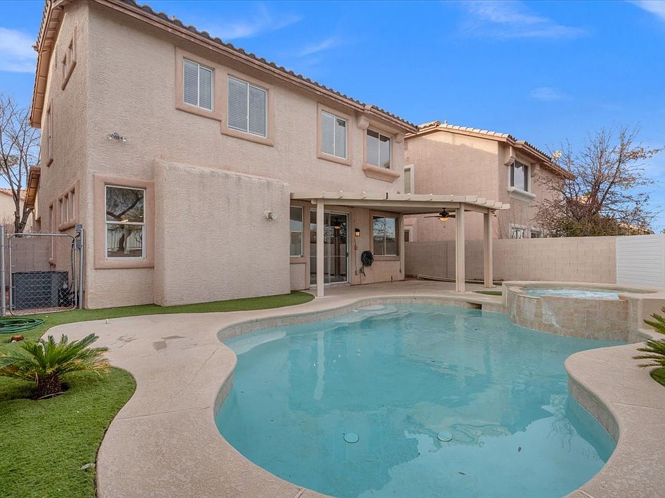 Modern and upgraded 4-bedroom home in Summerlin with beautiful strip views, a private pool, and a spa perfect for entertaining or cooling off on hot days. The open-concept layout features tiled floors, recessed lighting, and a stunning stone fireplace. The sleek kitchen boasts grey shaker cabinets, stainless steel appliances, and a quartz island, overlooking the backyard. The first level also includes a laundry room, half bath, and direct garage access for convenience. Upstairs, all four bedrooms feature laminate flooring and ceiling fans. The spacious primary suite offers a walk-in closet and an ensuite bath with a dual-sink vanity. Located in a desirable Summerlin neighborhood, this home is close to parks, shopping, dining, and top-rated schools. Application fee is $39 per person. Lease duration to be 1 or 1+ years. No smoking. Pets are allowed. Please submit GLVAR application with credit report, proof of income, and proof of funds. Rent includes: landscaping, pool maintenance, HOA Tenant to pay for: Electric, gas, water and cable/internet. Brokers agent(s) do not represent or guarantee accuracy of the square footage, bedrooms/bathroom count, lot size, or lot dimension, fees or other information concerning the conditions and features of the property. Tenant is advised to independently verify all information with appropriate professionals.