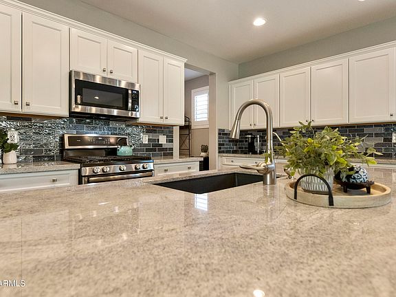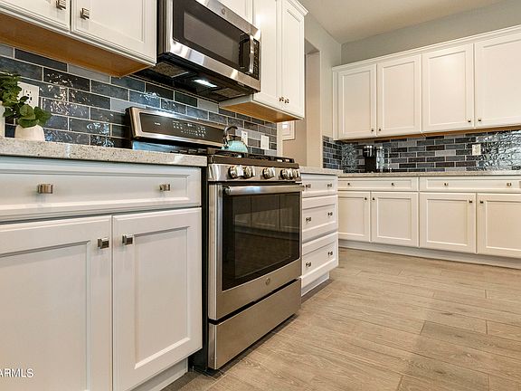 Highly sought after Waltz plan in the award winning active adult community of Encore. This nicely appointed home has wood look tile everywhere except bdrms. Kitchen offers extensive upgraded soft close white cabinets including pot & pan drawers & oversized island with upgraded granite counters, tile backsplash, W-I pantry & SS appliances with a gas stove. This is a split plan. The owner's suite is extended & has raised vanity with granite counters, dbl sinks, tiled shower with bench, W-I closet & linen closet. You will love the wall of glass that extends your living space to the backyard. The extended patio has a paver overlay that extends to the pergola & professionally landscaped. 2+ car garage. Encore offers, club house, pickle ball, tennis courts, heated pool & spa & much much more!