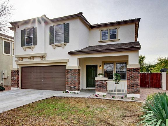 Beautiful four bedroom family home conveniently located in highly desirable Santa Rita Ranch! Great curb appeal with newly painted exterior. Freshly painted interior in warm neutral tones, 9 foot ceilings, new flooring downstairs, and an open floorplan. Nicely updated stainless steel appliances, granite countertops, tile backsplash, blinds, and recessed lighting make this kitchen a delight! En suite master bedroom with a good sized walk-in closet. Three additional bedrooms and laundry upstairs. Covered front patio and a large backyard. Home near a community park with easy access to the 60 and 202 freeways. Great restaurants and shopping close by. Home Warranty included.