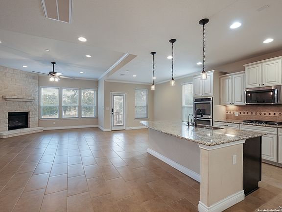 RARE FIND THAT IS PRICED TO SELL! 32 SOLAR PANELS AND A TESLA BATTERY BACK UP SYSTEM WITH TWO TESLA BATTERIES FOR ELECTRICITY STORAGE TO HELP LOWER THE ELECTRIC BILL ! I know you have been waiting to buy because of interest rates. This home will change your mind and you can move in just before the holidays. This stunning, well maintained home will take your breath away. Your new home sits on a .24 acre, cul-de-sac, greenbelt lot in a quiet neighborhood. This clean, open floor plan home features neutral colors, a host of premium upgrades and is ready for you to move in. Enter the home and on the right you will find a flex area with hardwood floors that can serve as a formal dining room or a larger office space. This home is designed for entertaining. Imagine yourself gathered around the large kitchen island spending quality time chit-chatting with the ones you love. The kitchen has full-overlay maple cabinets, granite counters, stainless steel appliances with gas cooking and double ovens. Recharge your body and mind by escaping to the large primary bedroom with a tray ceiling and bay windows that give you the perfect view to the scenic back yard. The primary bathroom has dual vanity sinks and an oversized luxury shower. The luxury shower has two shower heads and one of them is a rainforest shower head. Make your way upstairs to the 3 generous sized rooms and 2 full bathrooms. The bedrooms upstairs can accommodate a variety of different sized furniture. Upstairs you have two choices for fun and entertainment with a game room and a HUGE media room. The oversized media room and an additional small storage room/space near the game room are specific and unique to this home. Yes, that's right, you get to boast and say your home is one of a kind. Why not spice it up a bit, exaggerate and tell people you own a unicorn! Make your way downstairs out the back door to enjoy the peacefulness and great scenary the large back yard has to offer. Other features of this home are: smart thermostats, smart security system with remote access to control door locks, a high quality water softener and an in ground sprinkler system. Your new home is a short drive to Loop 1604 along with a host of shopping, dining and entertainment options. Still curious? Immediate, same day appointments are available. How would you feel if after waiting all this time to buy your dream home you lucked out because the other person looking for their new home scheduled their appointment and bought this home before you did. Don't miss your chance, take massive action and schedule your appointment now.