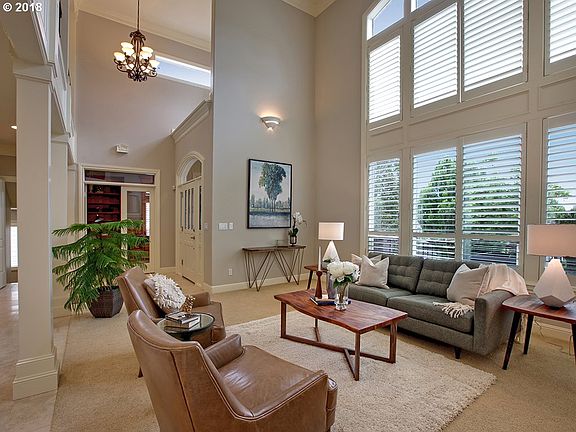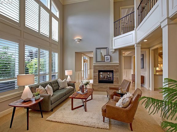 Soaring ceilings & walls of windows create a light-filled home in lovely Tudor Heights. West Hills views from balconies on 2 levels. Freshly painted walls, beautiful millwork, 4 fireplaces. Entertain in the formal living & dining rms or host team dinners in the huge chef's kitchen & family rm. Private, lush, level yard w/pool & hot tub. Lower lvl bonus w/guest bed/bath - perfect for teens/in-law. Miles to Downtown-6, Intel-9, Nike-4.